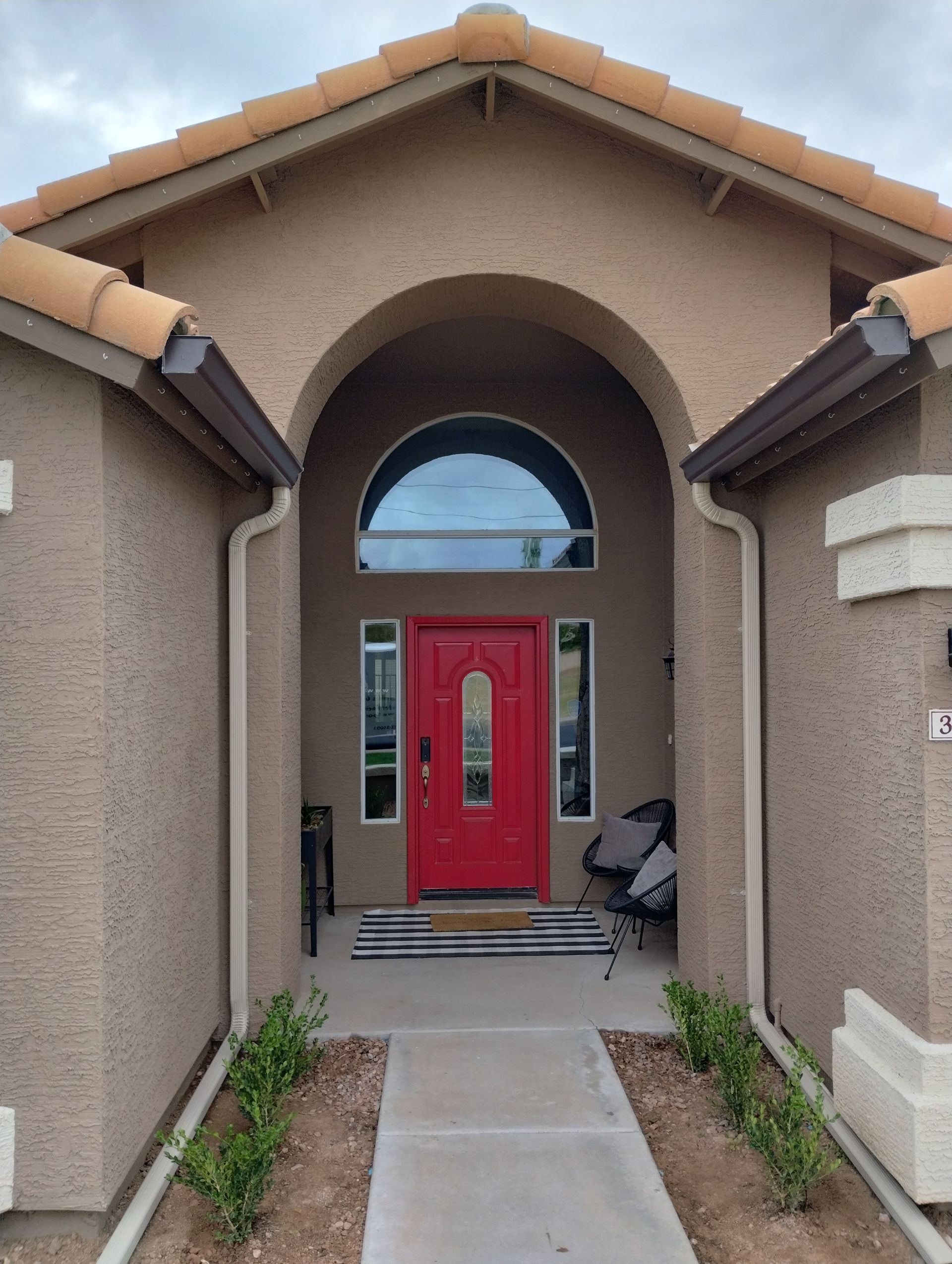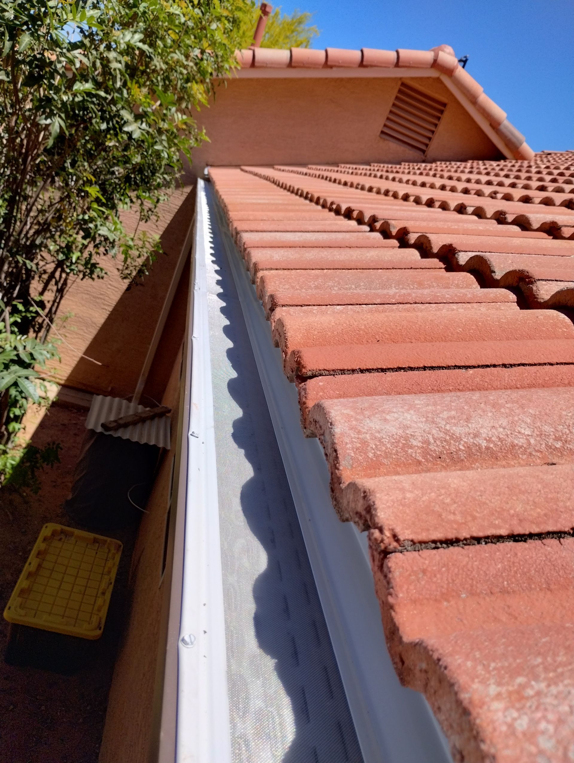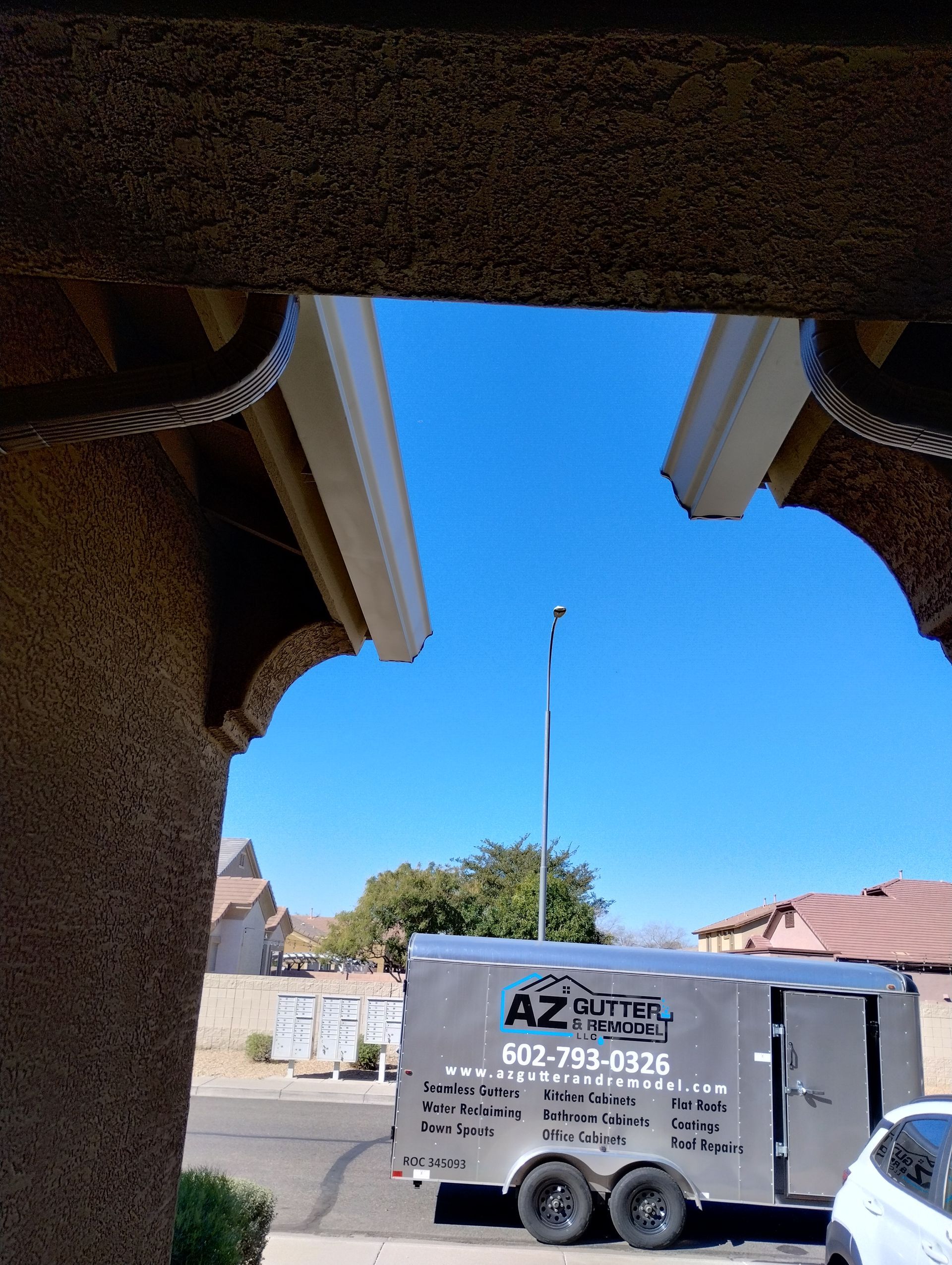 This a 20 year old home in Anthem. The home is have expansive soil problems causing the foundation to shift and move. We installed a 6" Seamless Gutter and Downspouts to divert the roof water way.