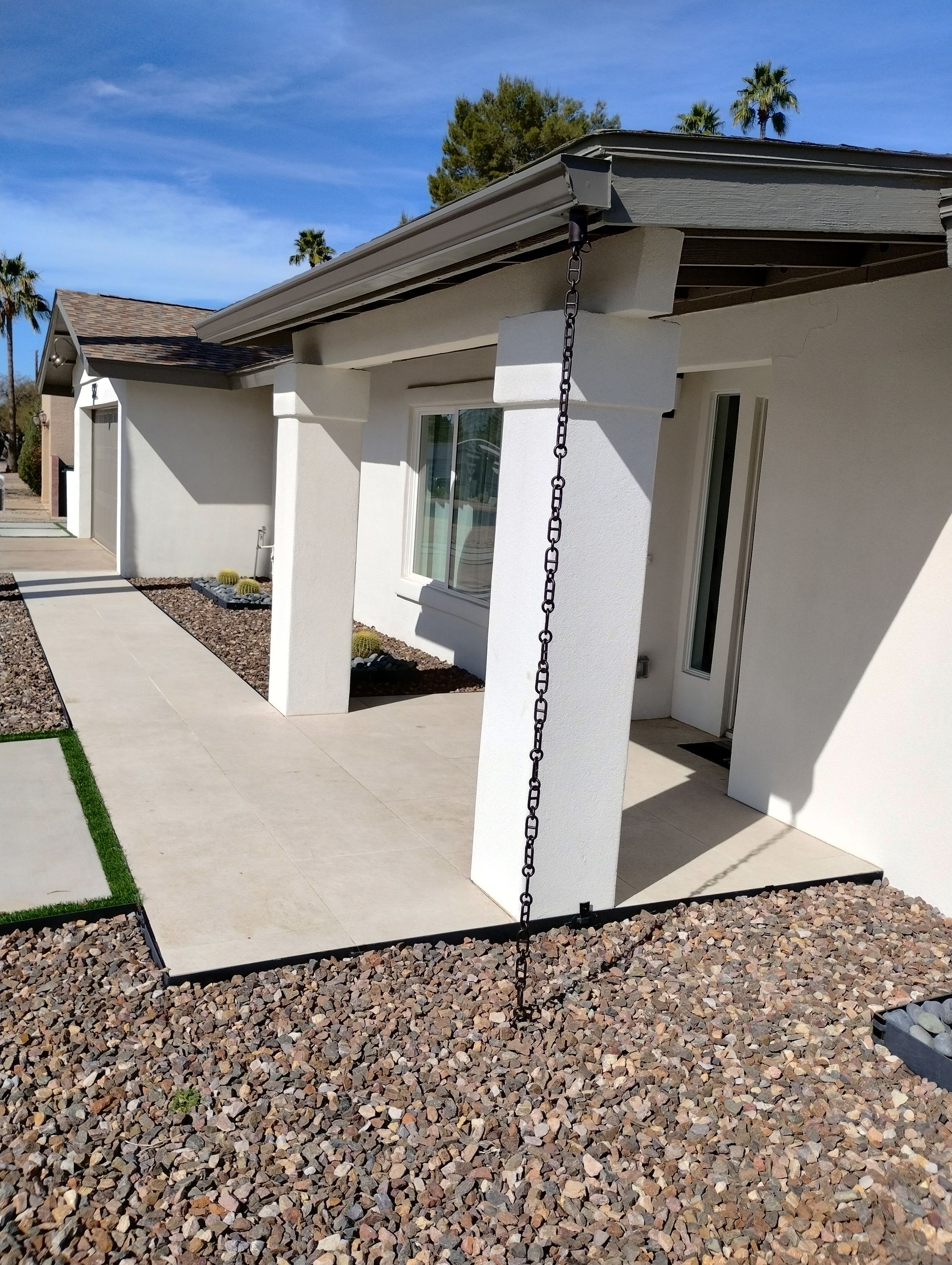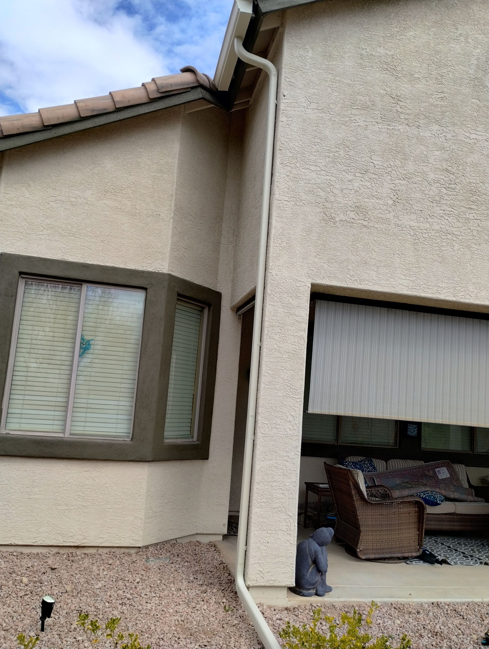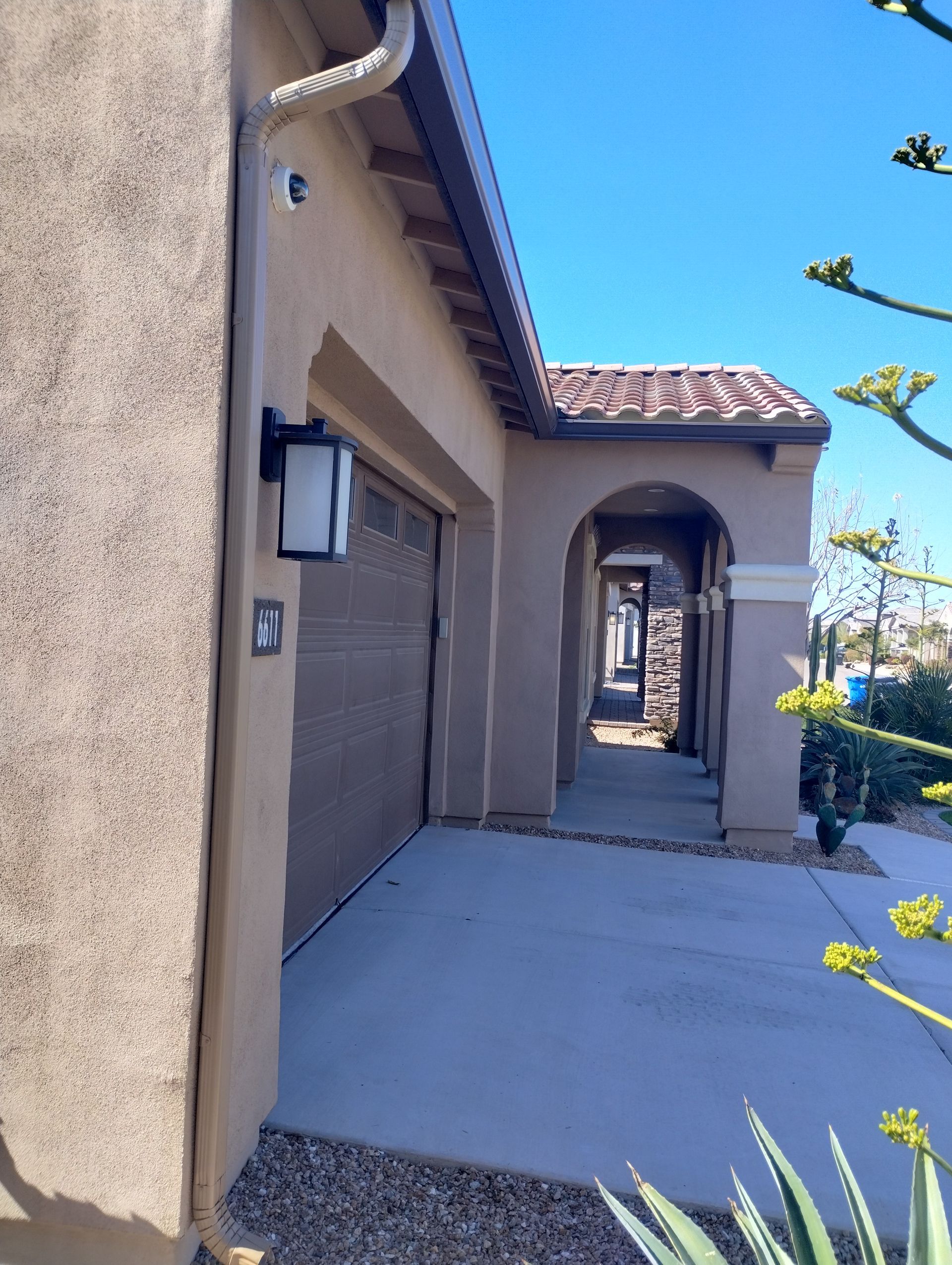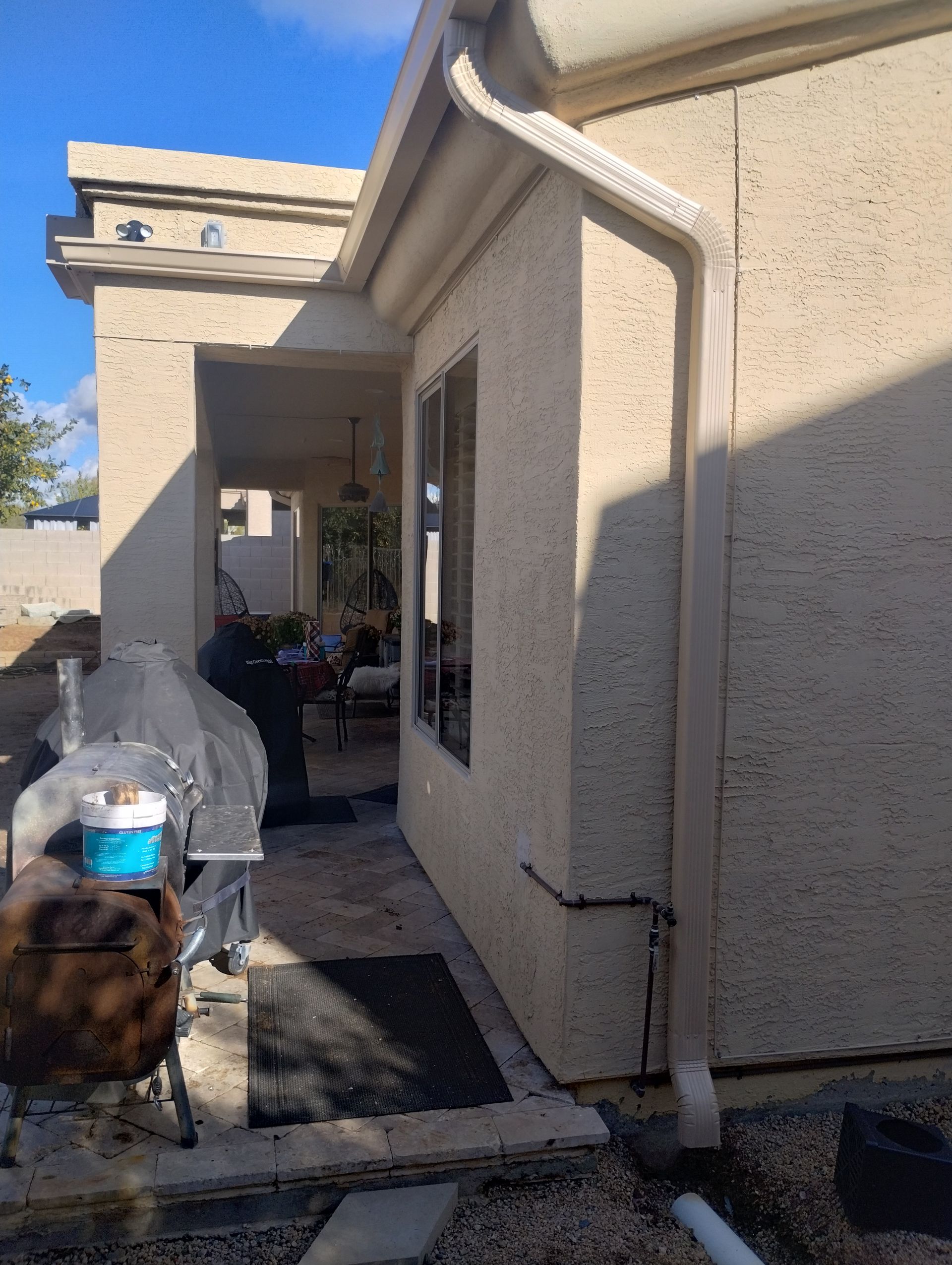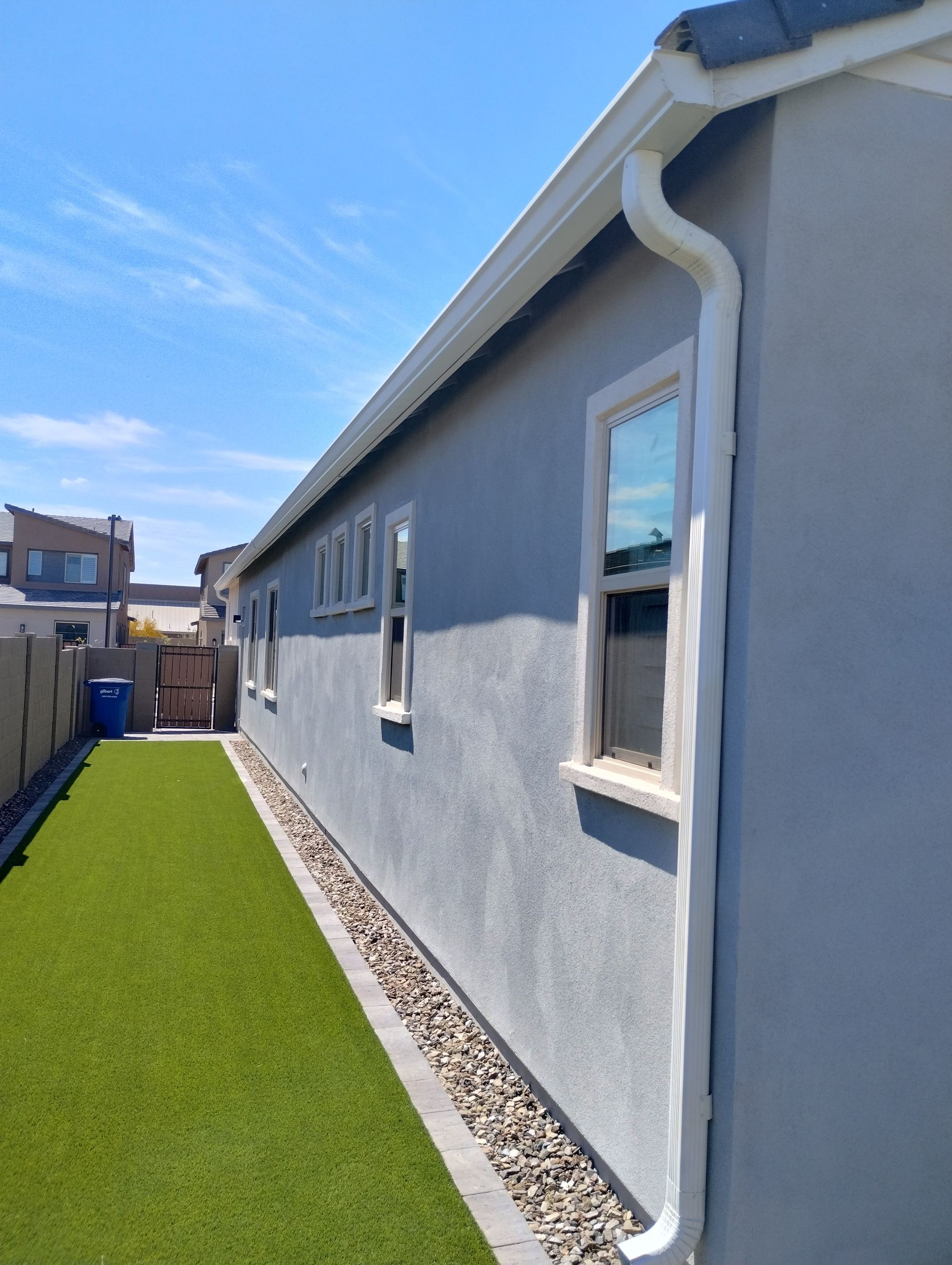 This home in Gilbert is less than a year old and the Homeowner understands the importance of protecting the foundation. The Homeowner wanted to help prevent any foundation issues. So we added a 6" Seamless Gutter and 3"x4" Downspout