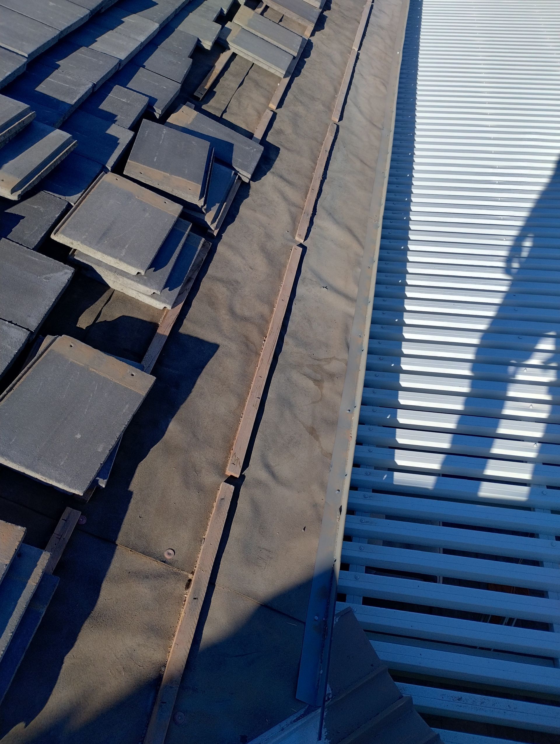 The pergola was installed low enough for us to install our 6" Seamless Gutter but we did have to remove the tile to install the gutter.