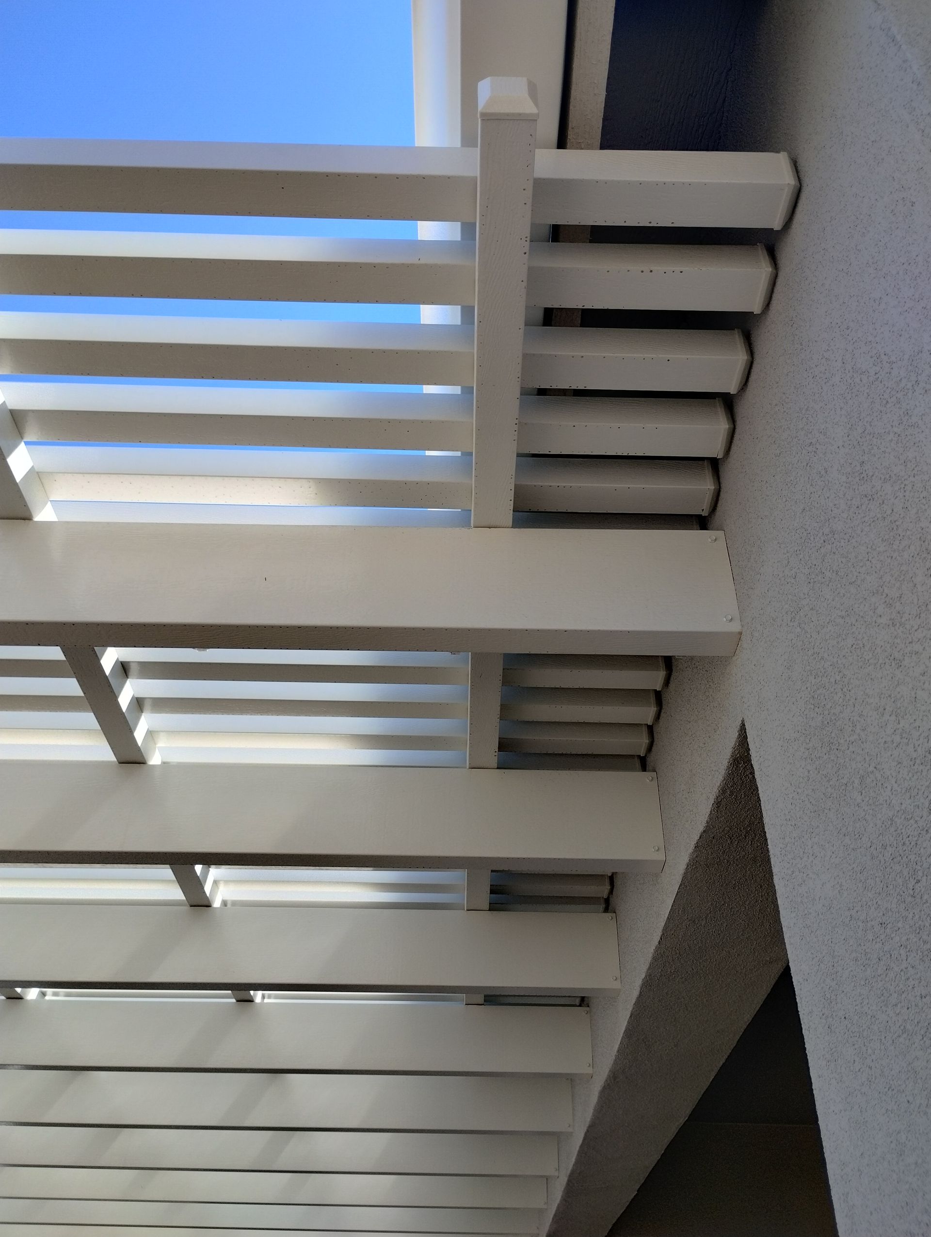 This homeowner was lucky that their pergola was installed low enough for us to run the new 6" Seamless Gutter. We did have to install the gutter from from above and remove the tile to do so.
